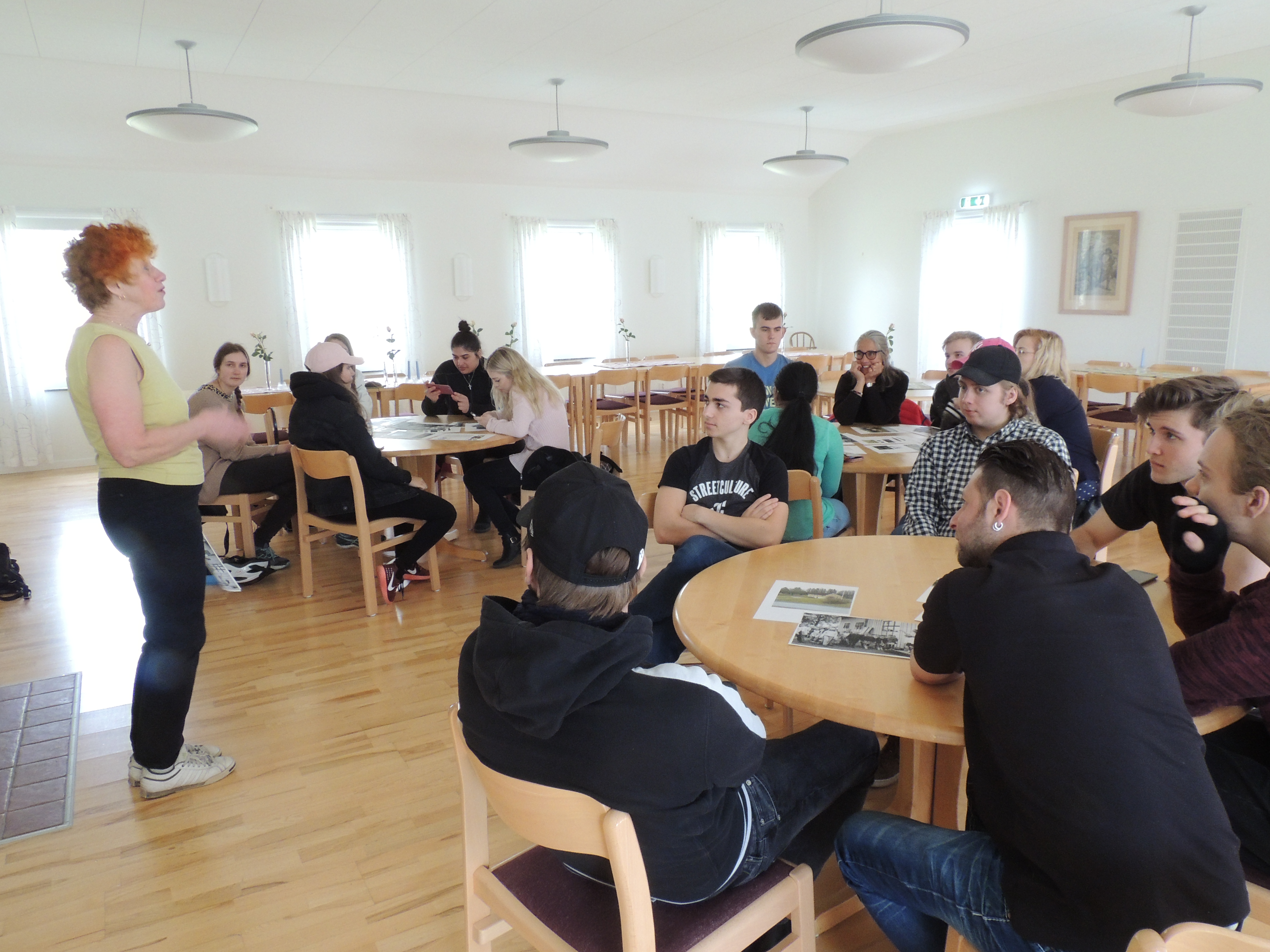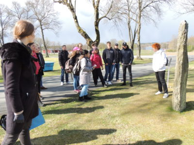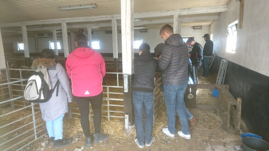 Allmän B1 och B2 fick en snabblektion ifrån vikingatid och järnålder till nutid och modernt fårbruk vid tisdagens temadag i Bogla, Rogberga. Lunchen intogs i anslutning till ytterligare historia på hemmaplan: I Tillandzgården, där alla hjälptes åt att ta hand om disken efter lektionen om Linnélärjungen som gett gården dess namn. Efter en stärkande promenad i vårblåst och sol avslutades temadagen med välkomnande bräkande från ett 70-tal lamm, ännu inte fem veckor gamla. (Tycker ni att några av de studerande ser äldre ut än de andra, så är det klassernas mentorer Marianne Kvist och Karin Lindström.)